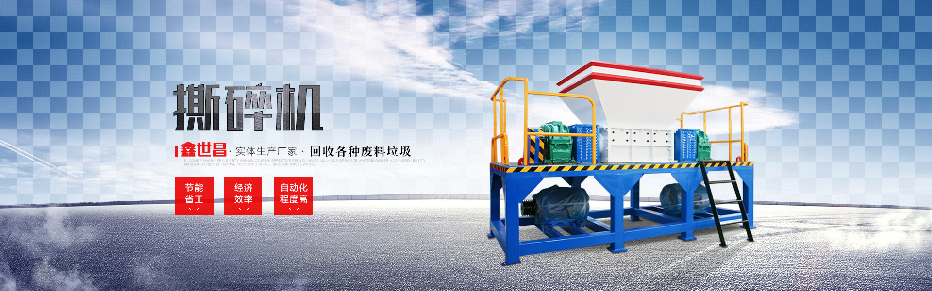 河南鑫世昌機械制造有限公司是一家集設計研發、生產制造、銷售售后為一體的綜合性骨干企業。生產塑料撕碎機、編織袋撕碎機、廢紙撕碎機、生活垃圾撕碎機等系列產品,還有廢鋼破碎機、廢鐵破碎機、廢鋁破碎機等設備,我公司還可根據用戶的要求標準和非標準提供各種機械及配件,免費提供安裝并保證質量,公司自創建以來,一直注重企業形象,管理科學,產品設計合理,并能根據市場的需求而開發產品,并以售前、售中和售后服務贏得廣大用戶的認可和信賴。 我們本著“誠信為本,永不松懈”的宗旨,竭誠歡迎各界朋友蒞臨指導